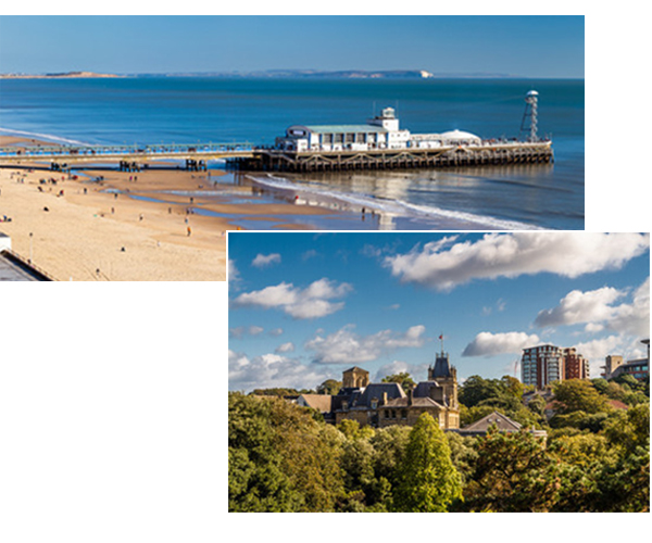 Bournemouth is an elegant town by the sea, situated on the south coast of England, approximately 2.5 hours from London. It is very popular seaside resort with 7 miles of golden beach and beautiful award-winning gardens and parks.